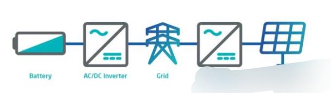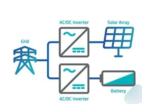 共址部署的交流耦合太陽(yáng)能+儲(chǔ)能系統(tǒng):太陽(yáng)能發(fā)電設(shè)施和儲(chǔ)能系統(tǒng)位于同一地點(diǎn),與電網(wǎng)共享一個(gè)互連點(diǎn)或具有兩個(gè)獨(dú)立的互連點(diǎn)。然而,太陽(yáng)能發(fā)電系統(tǒng)和儲(chǔ)能系統(tǒng)各自連接到單獨(dú)的逆變器,并且儲(chǔ)能系統(tǒng)儲(chǔ)器位于太陽(yáng)能發(fā)電系統(tǒng)的旁邊。它們可以一起發(fā)送或獨(dú)立發(fā)送電力。